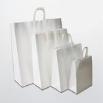 - The white twisted paper handles are securely attached, offering a strong, comfortable grip, making them easy to carry even with heavier contents.