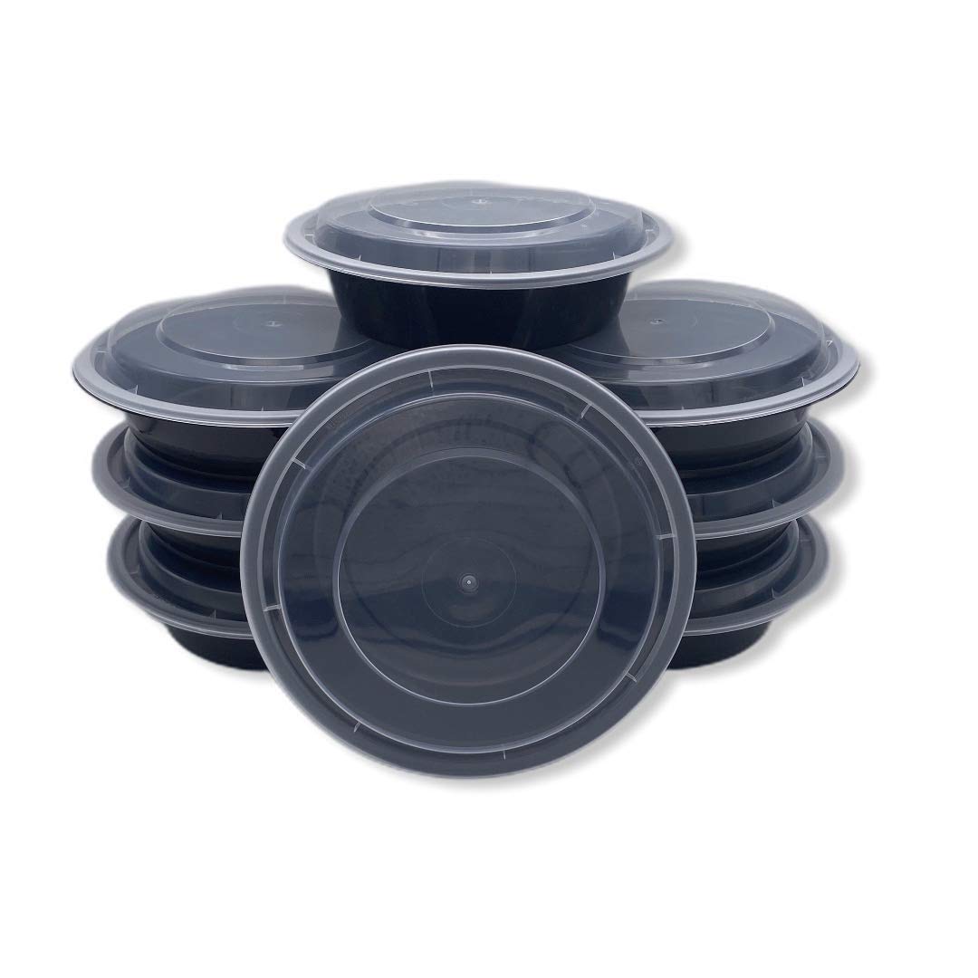 Heavy gauge round microwaveable containers can withstand temperatures up to 150 degrees and are dishwasher safe-clear leak proof lids. Package includes 150 black bases and 150 clear lids.